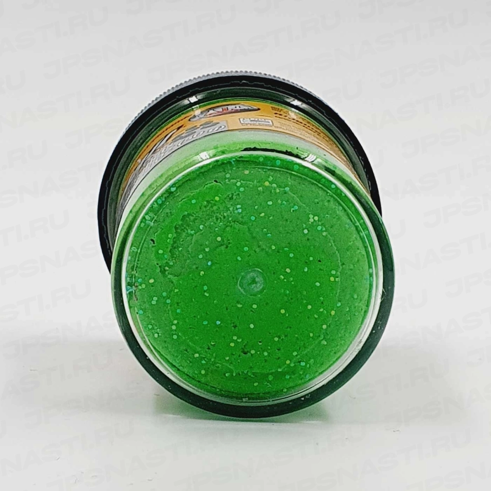 Узнать подробнее про - Паста форелевая Berkley PowerBait Natural Glitter Trout Bait, зеленая с блестками, пеллетс.
