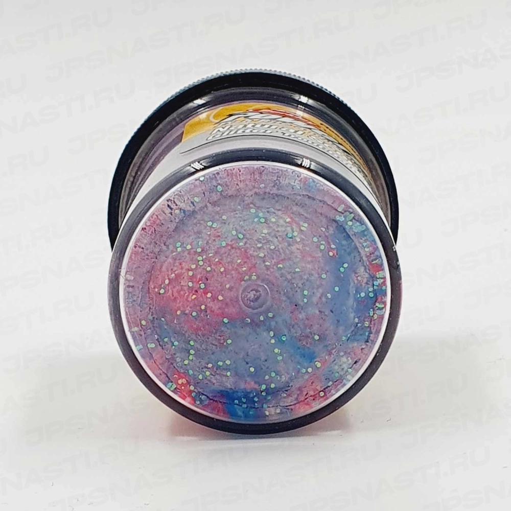 Узнать подробнее про - Паста форелевая Berkley PowerBait Natural Glitter Trout Bait, сине-красно-белая с блестками, чеснок.