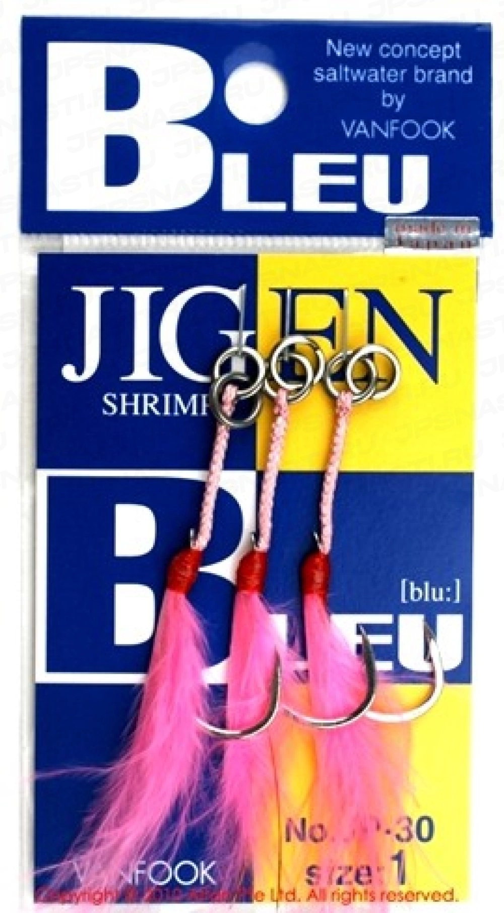 Vanfook JP-30 - японские одинарные крючки ассисты класса Standart с опушкой из розовых перьев марабу и пленки для морского лайт-джигинга. Цвет крючка - серебряный.
