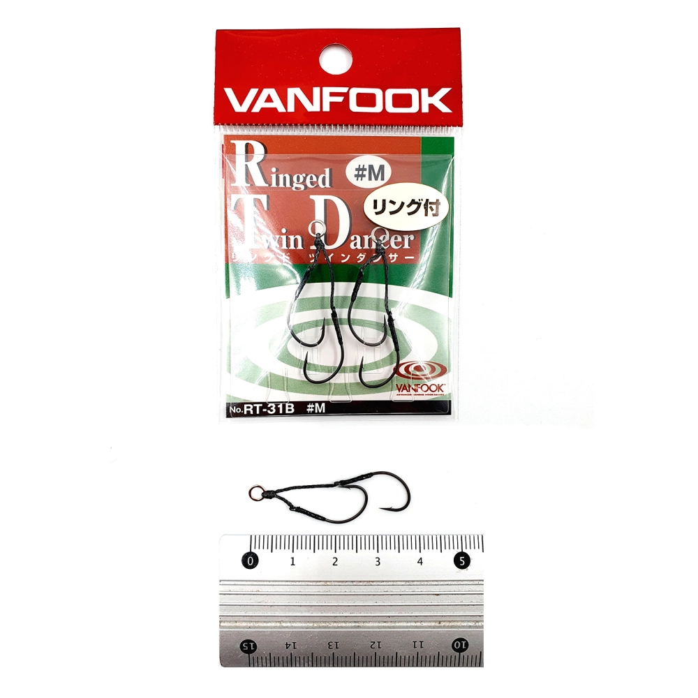 Узнать подробнее про - Крючки ассисты Vanfook TD-31R, M. Twin Dancer - японские одинарные крючки-ассисты от бренда Vanfook. Класс мощности - "standart". Предназначены для оснащения лососевых блесен и других приманок небольшого размера. На одном подвесе располагаются сразу 2 крючка (друг под другом), что обеспечивает лучшую засекаемость рыбы. Фирменные крючки Vanfook изготовлены из прочной проволоки, которая превосходно "держит" рыбу в процессе вываживания. Представлены в двух расцветках: