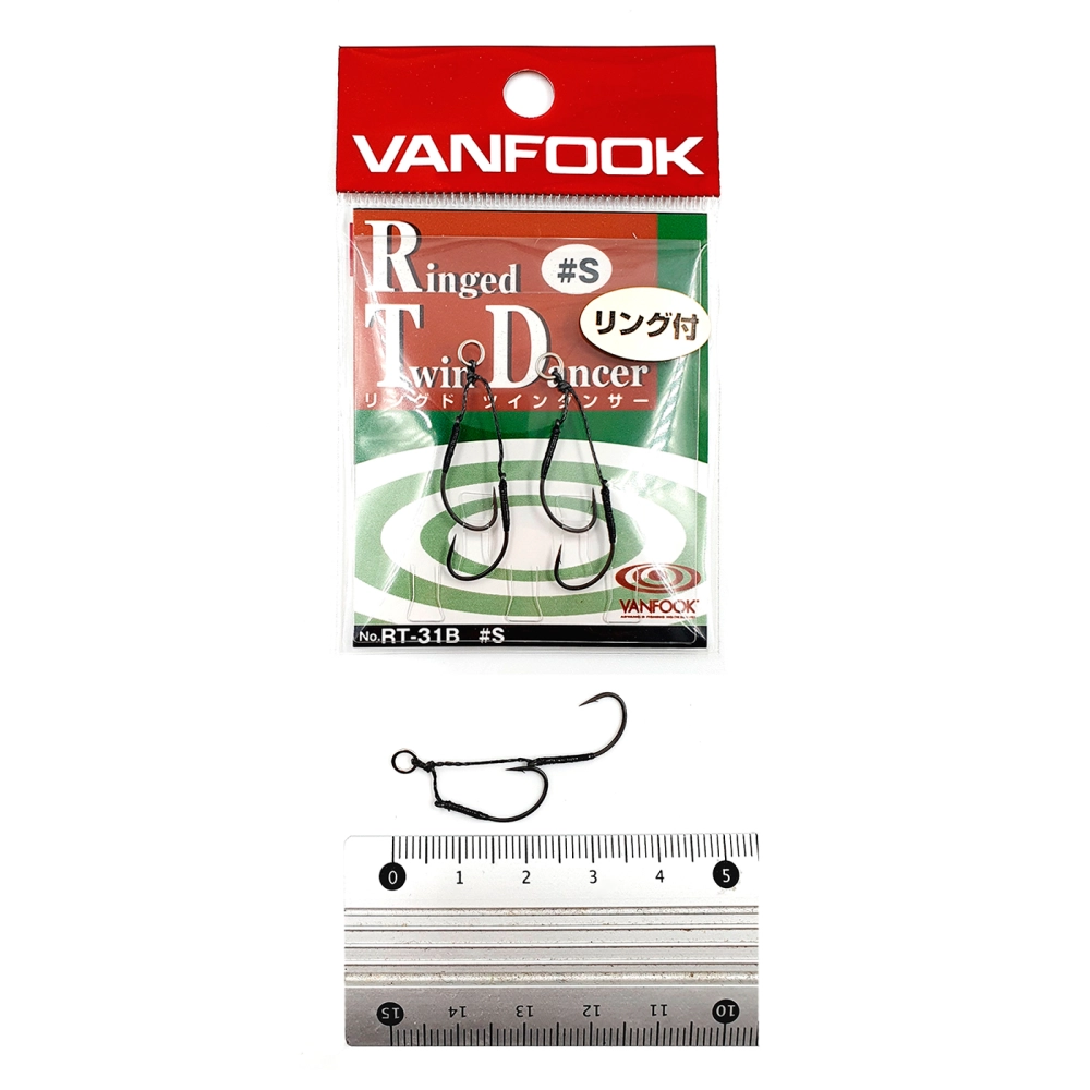 Узнать подробнее про - Крючки ассисты Vanfook TD-41B, #S. Twin Dancer - японские одинарные крючки-ассисты от бренда Vanfook. Класс мощности - "standart". Предназначены для оснащения лососевых блесен и других приманок небольшого размера. На одном подвесе располагаются сразу 2 крючка (друг под другом), что обеспечивает лучшую засекаемость рыбы. Фирменные крючки Vanfook изготовлены из прочной проволоки, которая превосходно "держит" рыбу в процессе вываживания. Представлены в двух расцветках: