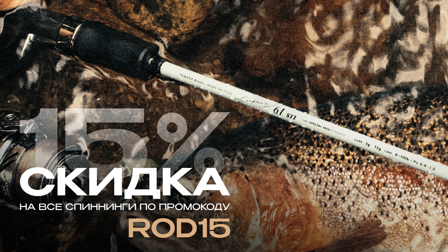 Для получения скидки достаточно ввести промокод при оформлении заказа в интернет-магазине, или назвать промокод на кассе, при покупке спиннинга в шоу-руме.