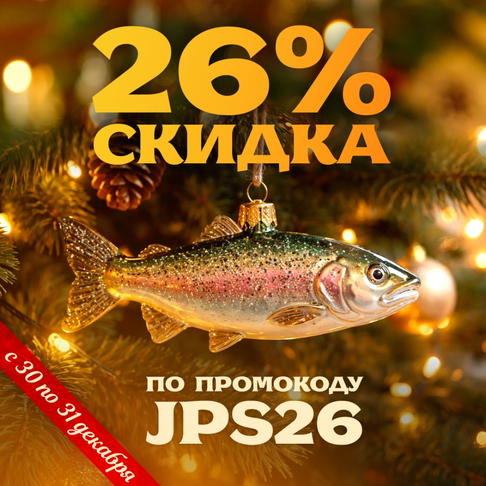 А чтобы каждый рыболов мог порадовать себя крутыми СНАСТЯМИ по самым ВЫГОДНЫМ ценам в преддверии праздника - мы сделали ПРОМОКОД "JPS26", применив который на стадии оформления заказа, вы получите СКИДКУ 26%!