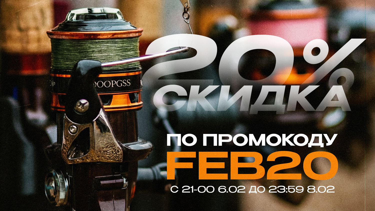 Успейте воспользоваться ПРОМОКОДОМ "FEB20" в JPSNASTI.RU и приобрести ЛУЧШИЕ рыболовные товары со СКИДКОЙ 20%! |