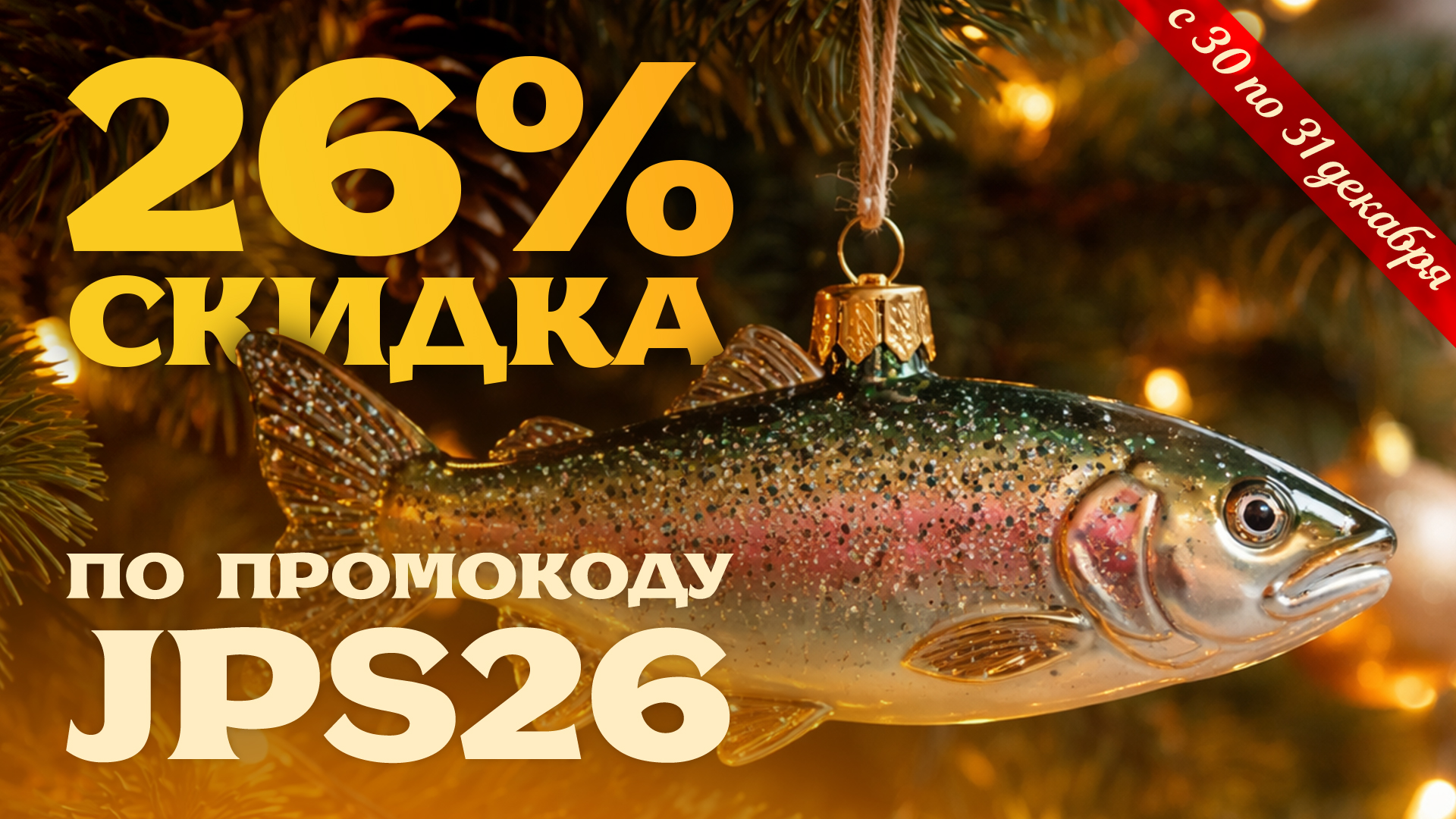 Компания "Японские снасти" совместно с интернет-магазином JPSNASTI.RU от всей души поздравляют всех рыболовов с наступающим Новым годом! Пусть 2026 год принесет в ваш дом много радости и исполнит все заветные желания, а также будет наполнен множеством красок, ярких событий и рыболовных приключений. Искренне желаем, чтобы достаток, удача и успех сопутствовали каждому из вас, не бойтесь смело мечтать и уверенно идти к достижению своих целей. Мы благодарим каждого клиента за доверие, плодотворное сотрудничество и выбор нашего магазина. А чтобы каждый рыболов мог порадовать себя крутыми СНАСТЯМИ по самым ВЫГОДНЫМ ценам в преддверии праздника - мы сделали ПРОМОКОД "JPS26", применив который на стадии оформления заказа, вы получите СКИДКУ 26%! Срок действия ПРОМОКОДА - с 21:00 30 декабря до 23:59 31 декабря! Скидка по ПРОМОКОДУ: