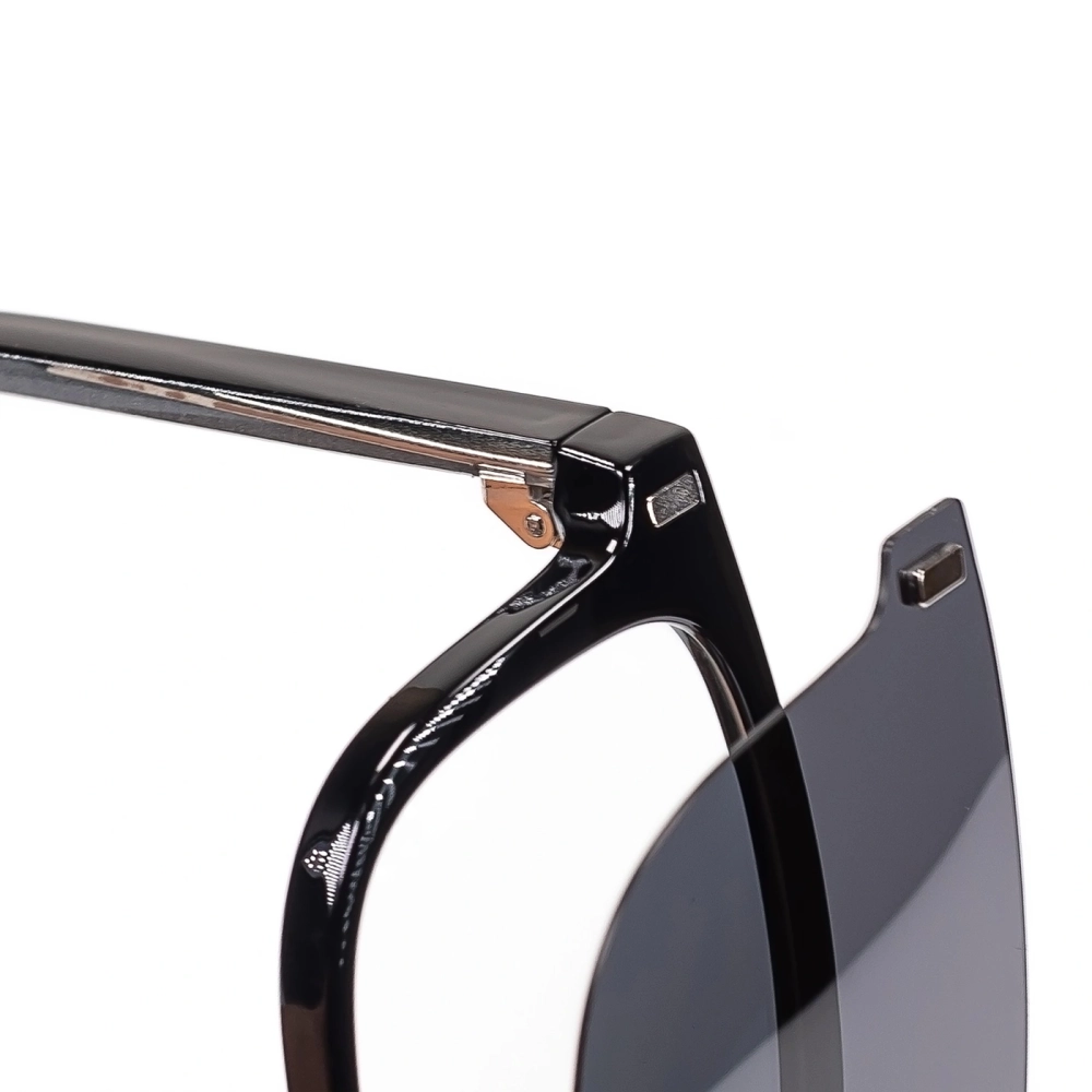 Узнать подробнее про - Очки c поляризационной накладкой Brenda CG7201 С1, shiny black. Brenda CG7201 - очки под диоптрийные линзы с солнцезащитным клипоном на магнитах. Клипон: затемненный, цвет синий, с поляризацией «polarization technology», выполнен из материала поликарбонат «policarbon», 100 % исключают вредное UVA, UVB, UVC излучение, категория светофильтра S3.