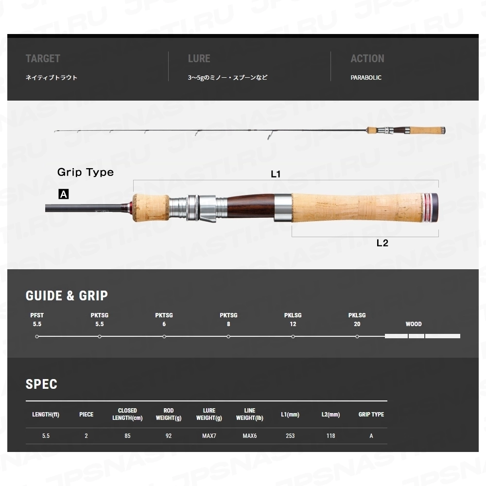 Спиннинг Tailwalk Troutia 55L, 167 см, до 7 гр |